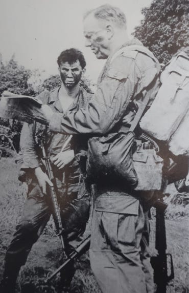 As the officer commanding, admin company, 8RAR, he arrived back in South Vietnam on 19th November 1969, where the battalion took part in arduous operations in Phuoc Tuy Province and, moreover, in the Long Hai Mountains. During the tour, he temporarily commanded both Alpha and Charlie Companies, of which, at 47 years of age, he was arguably one of the oldest infantry company commanders on operations, of which the younger soldiers were all aware that he was a former WW2 commando and even used a commando Bergen in the field.